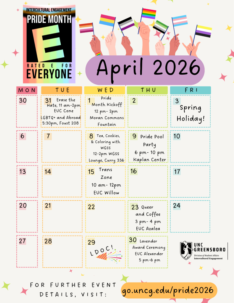 Come out and celebrate the start of PRIDE month at UNCG with resources, giveaways and performances!